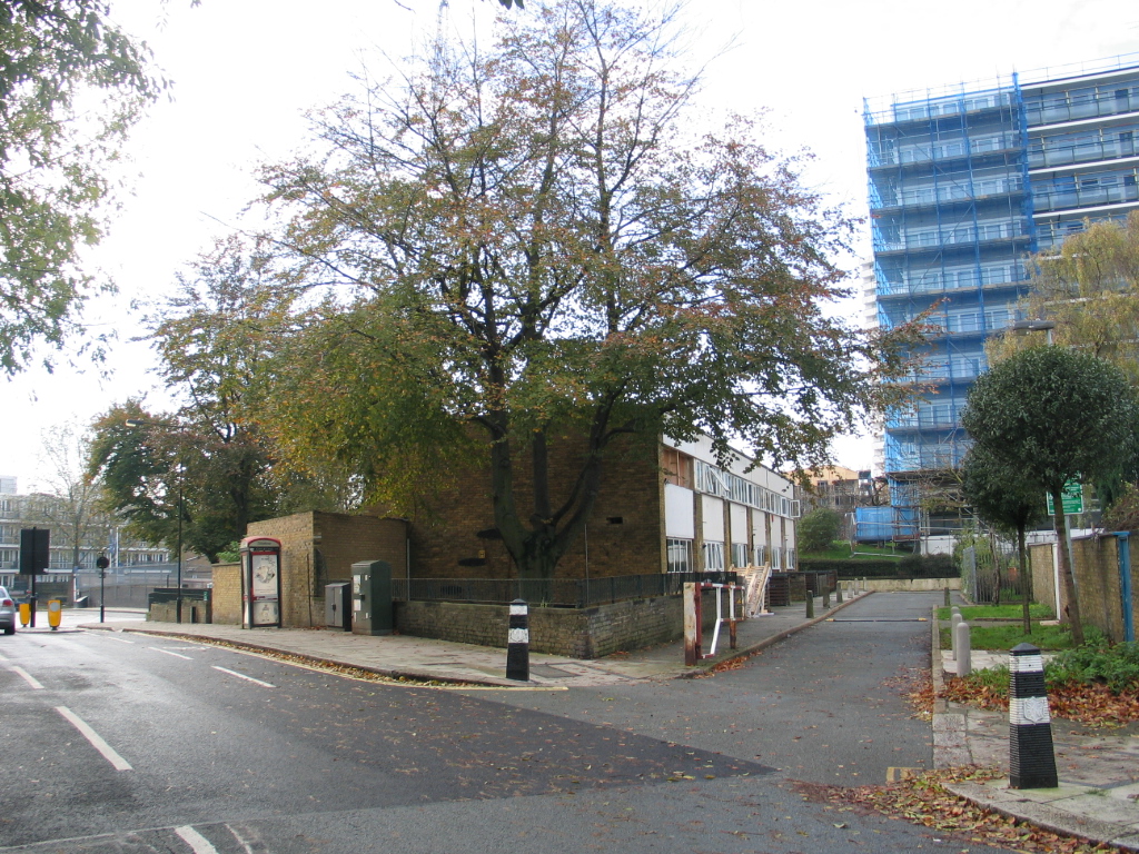 This small piece of land is part of Barrington Court estate, designed by Powell and Moya in 1952-54 as a mixed group of three terraces of two storey houses and a ten storey block of flats. Three small bits of land at the end of each of the terraces were left as open space for trees.
