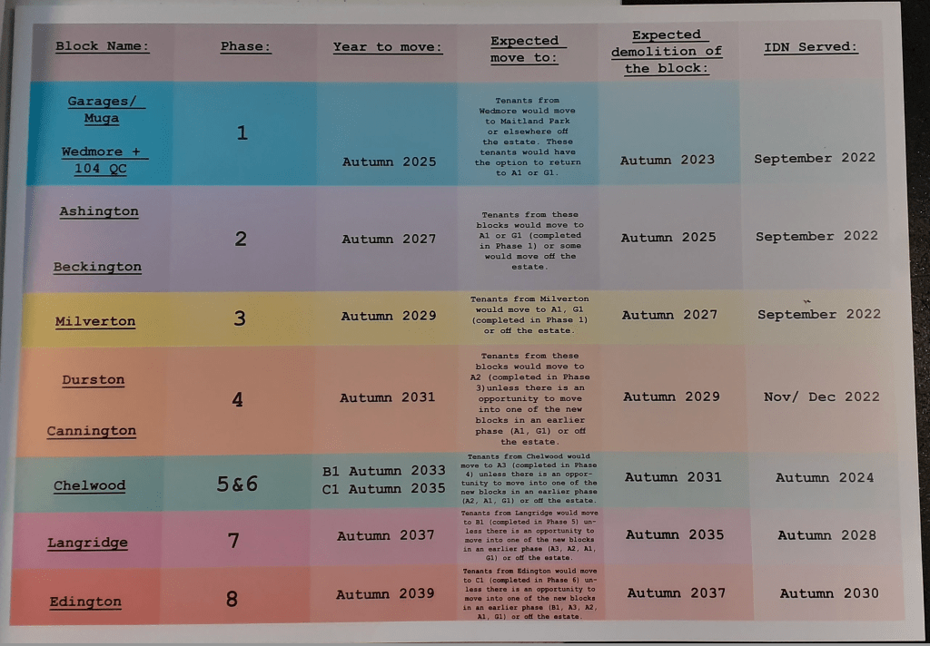 Above: timeframe for demolition and when the Initial Demolition Notices are to be served