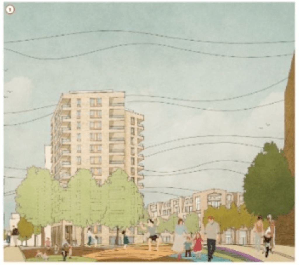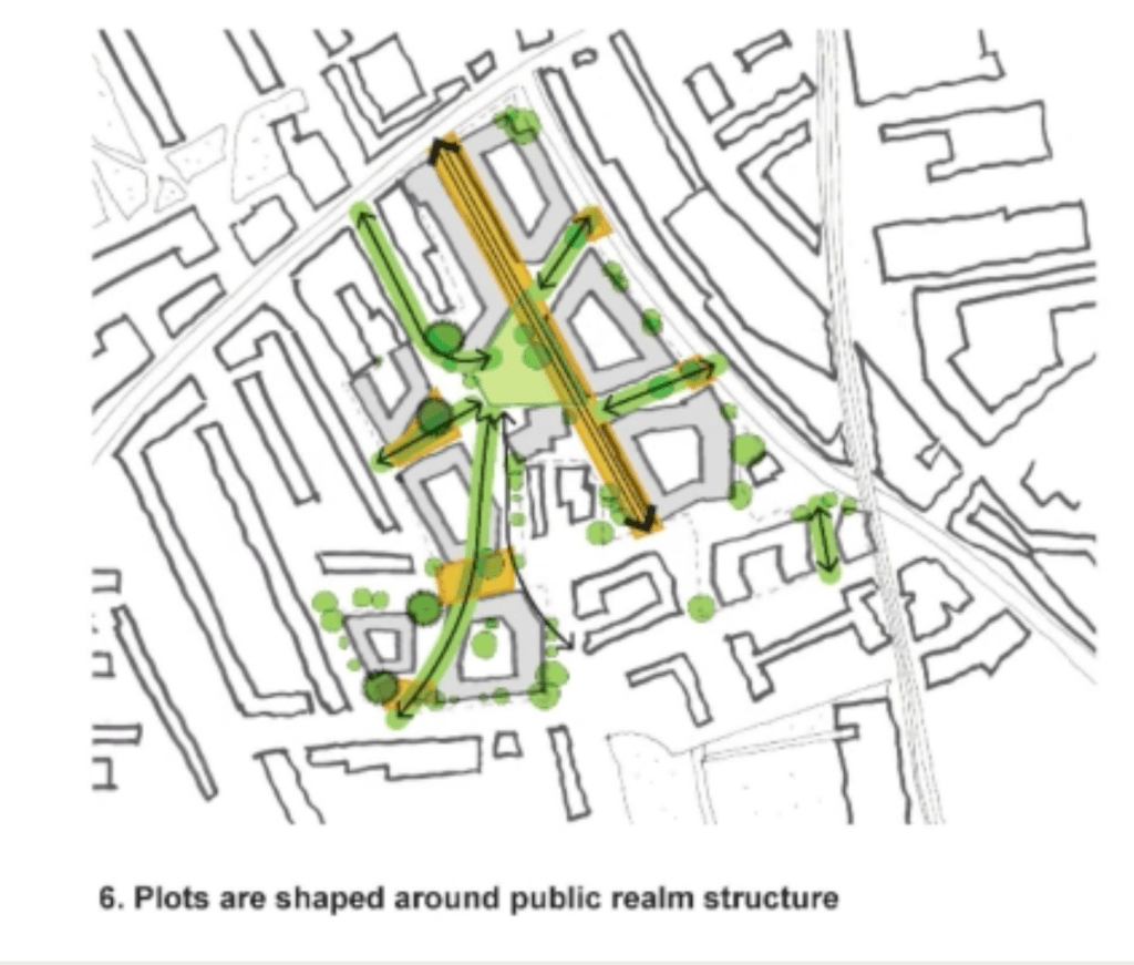 Why is there a ‘gateway’ half way along Allcroft Road? Where is the wider context of routes through the area that may help explain this? A major new east-west axis goes against the grain of the street pattern of the neighbouring street plan for no obvious benefit. There is no visualisation of this major east-west boulevard other than this crude overview.