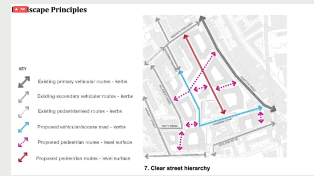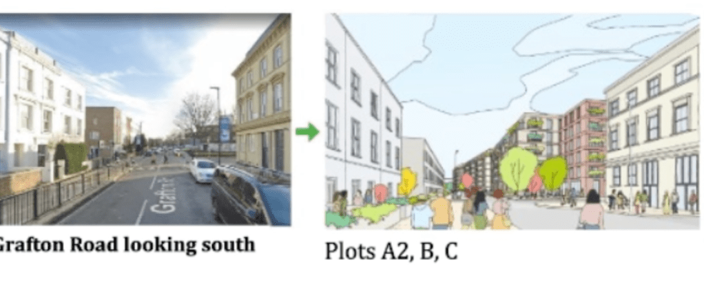 The architect said that the height of the new buildings on Grafton Road was a function of the width of the road and the distance between buildings, and that the 20m distance justified a 6 storey building opposite the existing 3 storey houses, and a slightly wider road justified a 7 storey building opposite existing 2 storey houses. AHMM are dumbing down the discussion to a shocking degree. Urban design needs to take into account a lot more than road widths, including the scale and character of the existing buildings and the need to create a liveable environment.