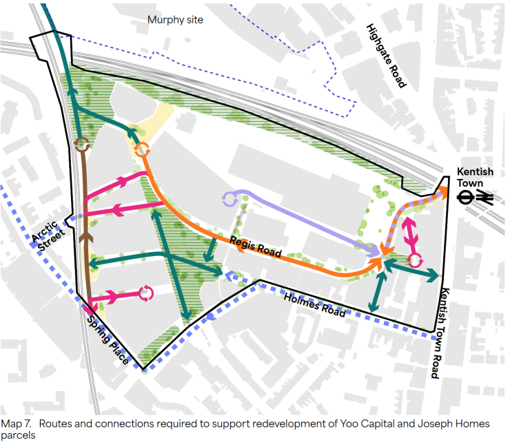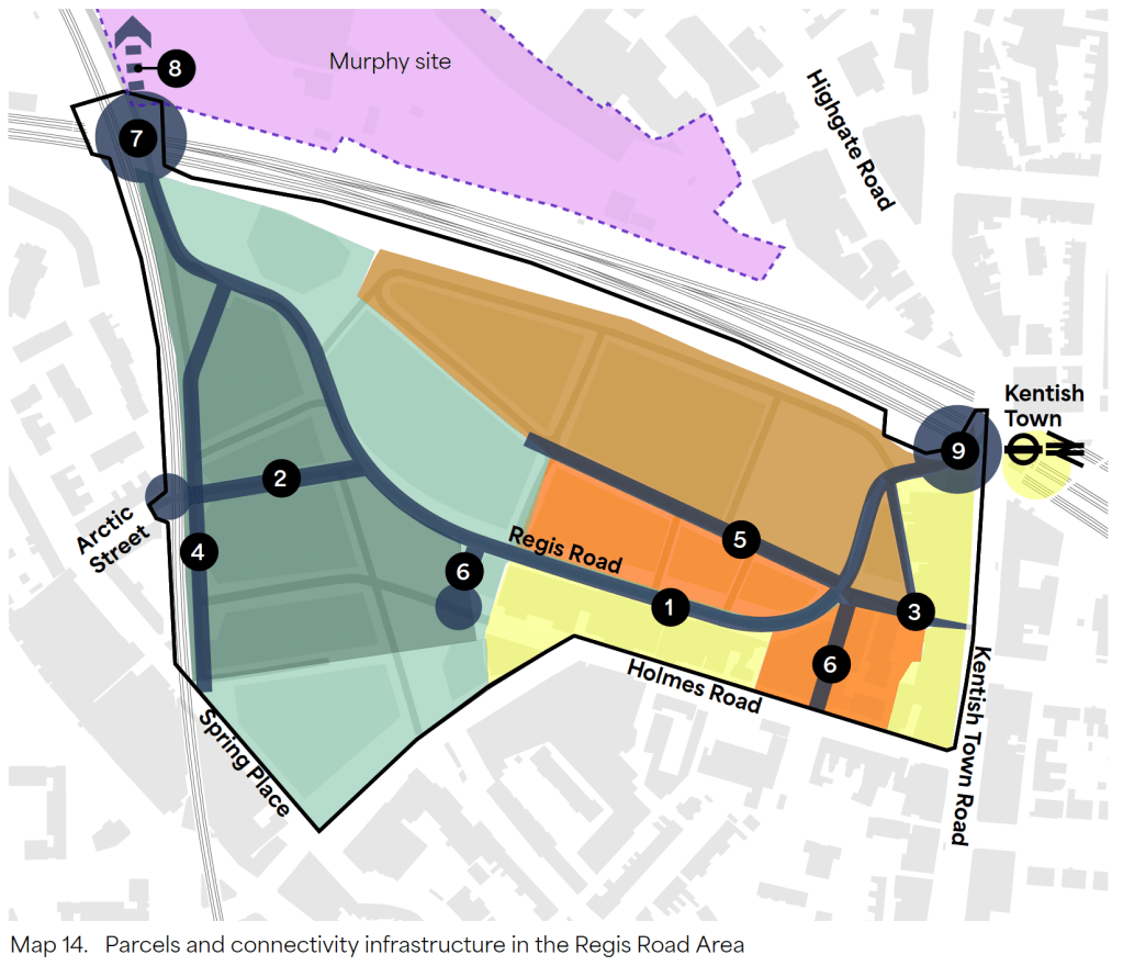 Camden have published a document intended to enable Yoo Capital’s plans for the Regis Road Industrial Area. The masterplan shown at the start of the document ignores the fact UPS do not intend to sell their depot and Big Yellow won an appeal against Camden due to the lack of a masterplan: