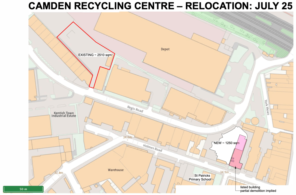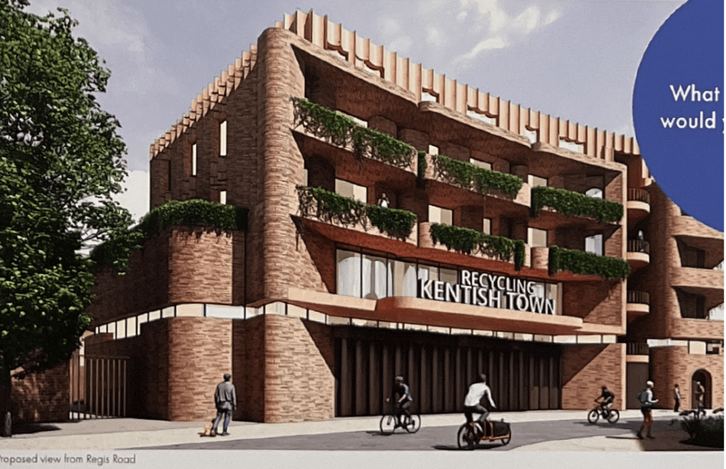 Yoo Capital have released information about their proposed scheme for film studios to be built on the site of the existing recycling centre at Regis Road, and for housing to be built on the site of the existing Holmes Road depot (recently refurbished with £8.4m public money). They propose a new drive-in recycling centre on Holmes Road, on the site of the Police Station, with replacement social homes on top of it. The proposed recycling centre is a much reduced facility. It is poor architectural design which will result in a large quantity of unnecessary carbon emissions and other environmental harms, including noise and vibration affecting nearby homes and those above it.
