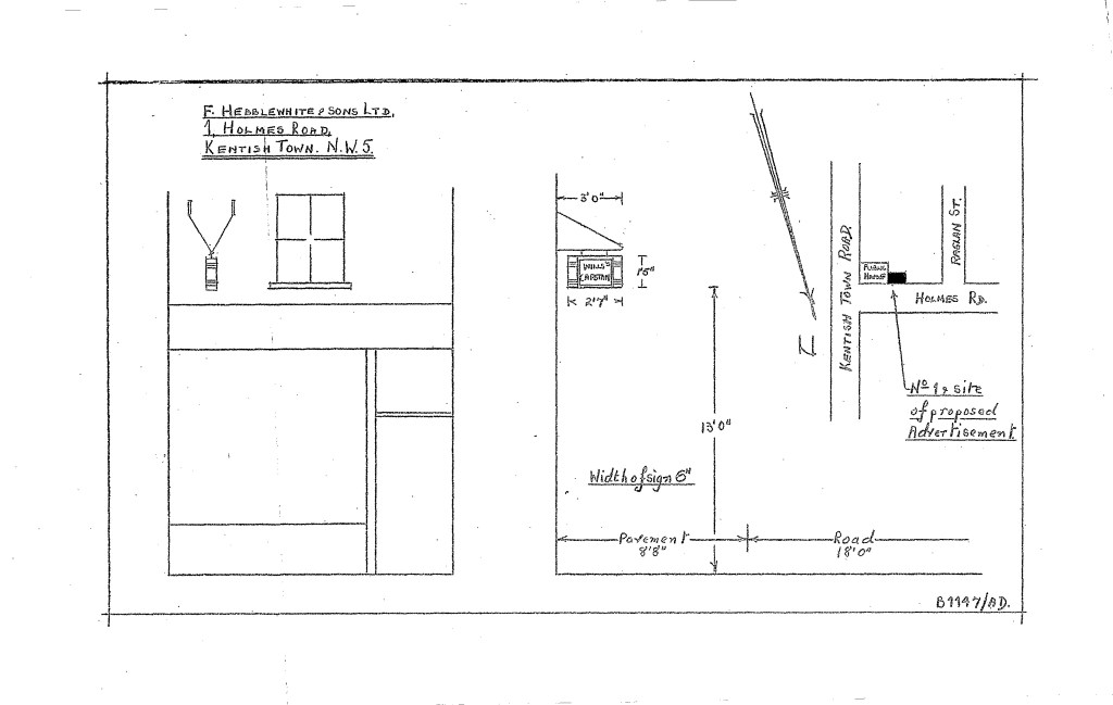 Sign at 1 Holmes Road, 1953: