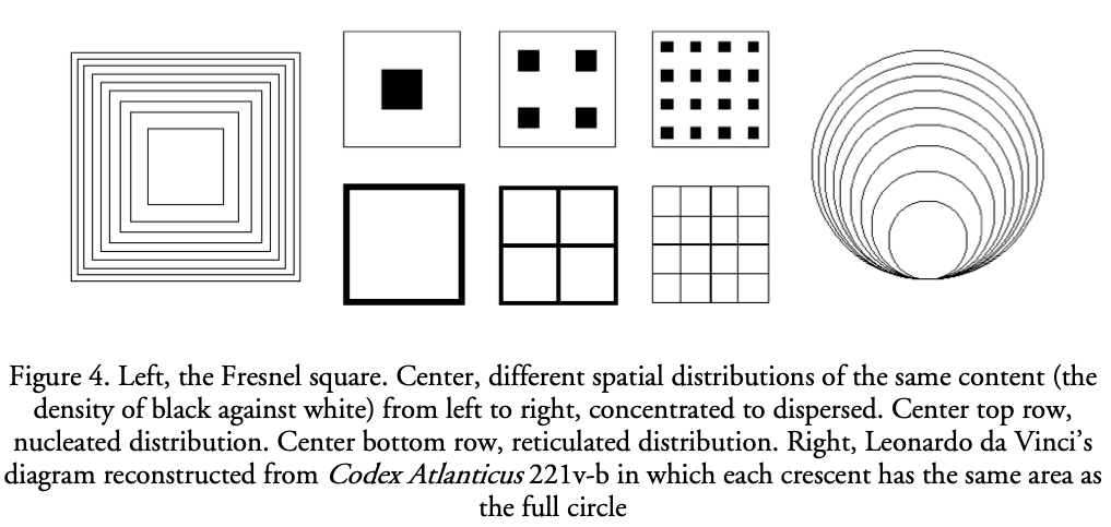 In the Sixties and Seventies, Lionel March and Leslie Martin wrote a series of well-known papers about efficient urban planning which explored the courtyard or perimeter block. They noted that floor area in a notional multi-storey tower could be re-configured in a perimeter block and “so arranged would pose totally different questions of access, of how the free space is distributed … and what natural lighting and view the rooms within them might have” (Lionel March & Leslie Martin, Urban Space and Structures, 1972). The idea was expressed using the Fresnel diagram: