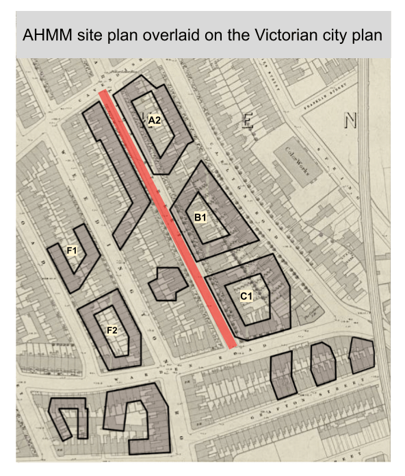Mae’s 2017 layout shows that the spine wasn’t always important. The current notion that there is a need to ‘reinstate’ the ‘north/south orientation’ or ‘the traditional Victorian terraced street typology’ is conservation blah-blah to give respectability to poor town-planning. AHMM are reintroducing the spine to get more flats in, ignoring the fact their courtyard buildings do not sit well on the squashed parcel lying between it and Grafton Road.